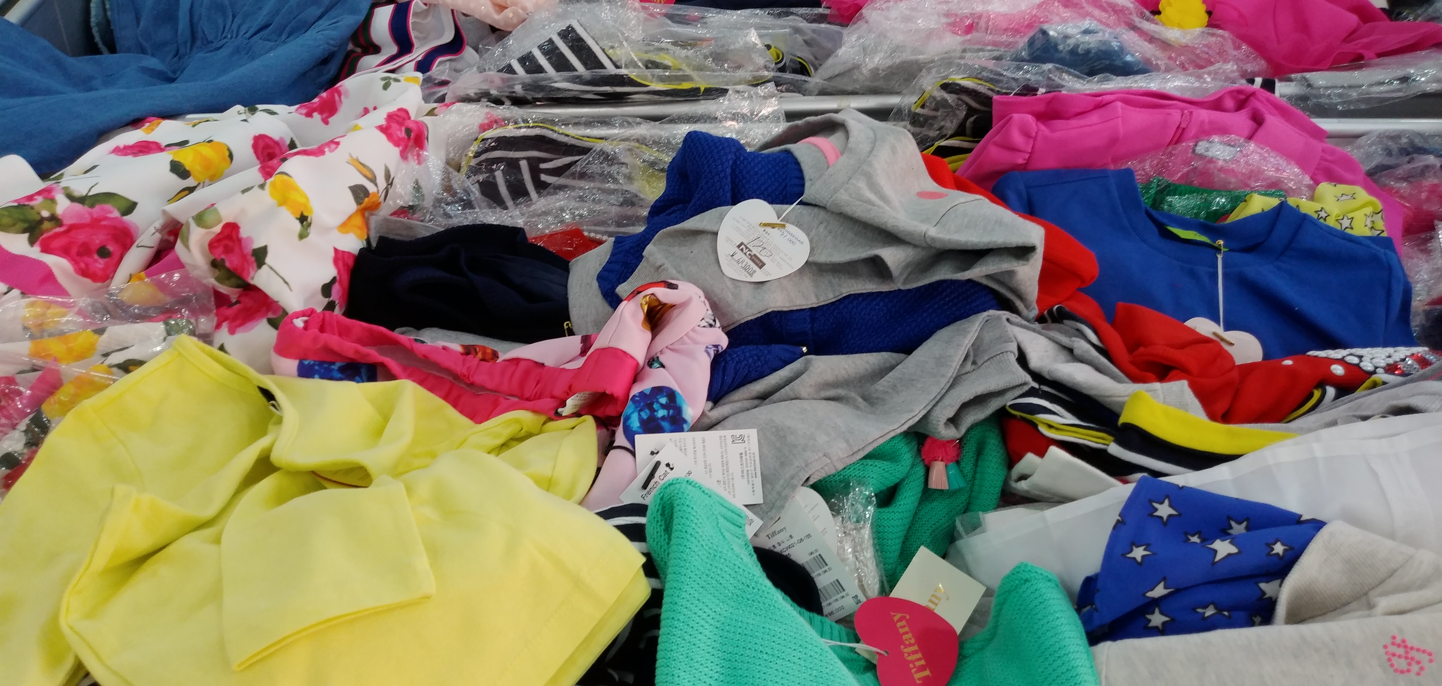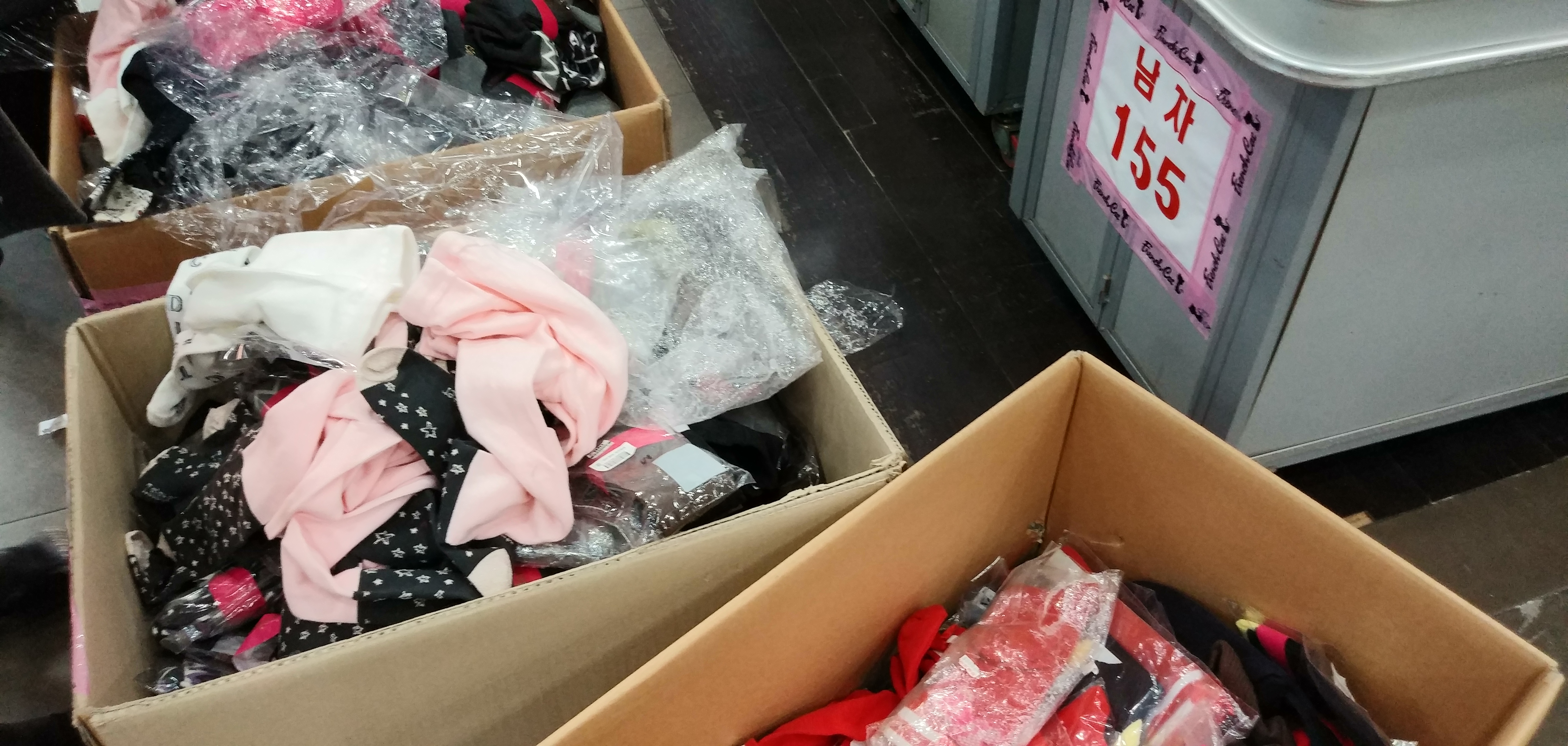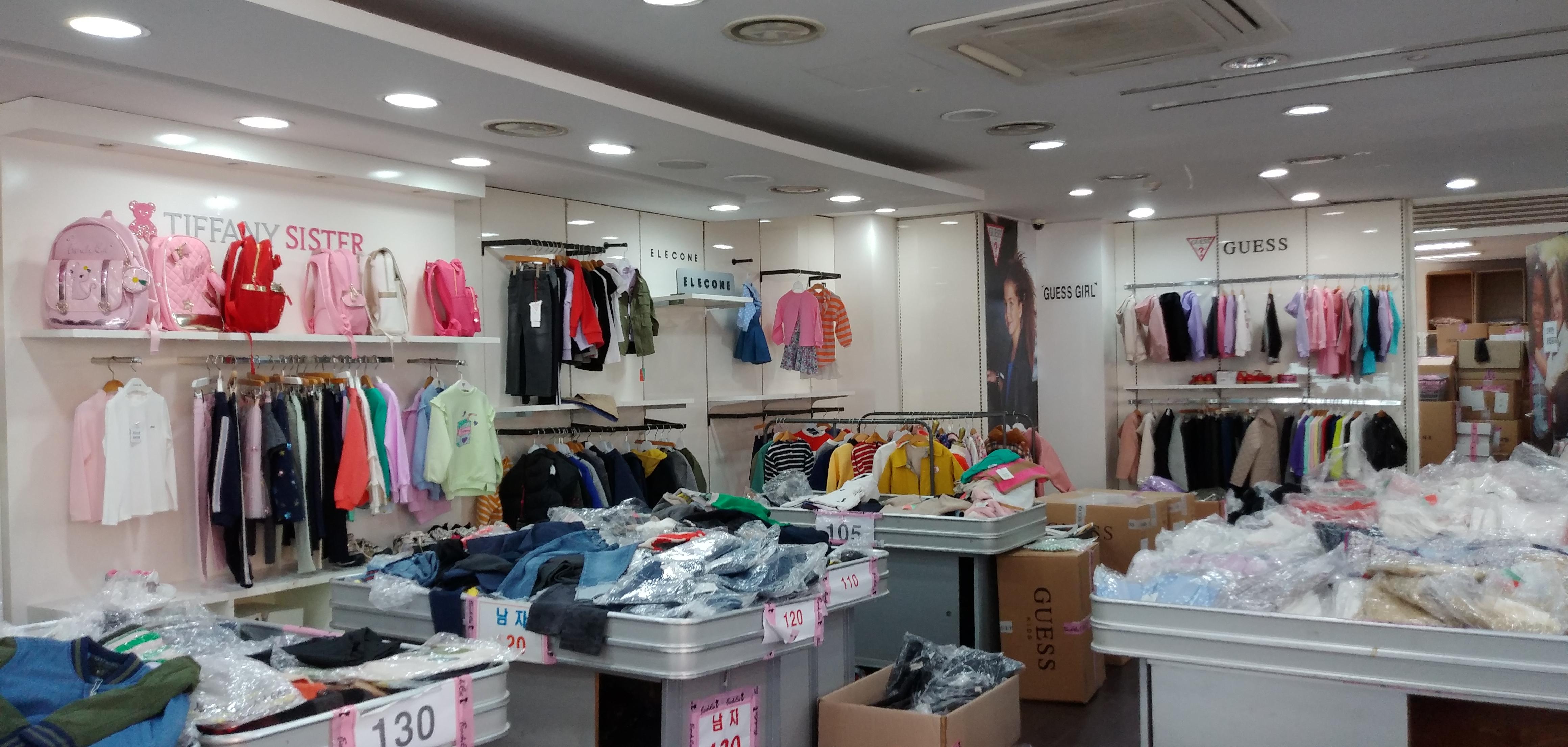 상설매장이라 많은 옷들이 이렇게 매대에 사이즈별로 정리되어 있습니다