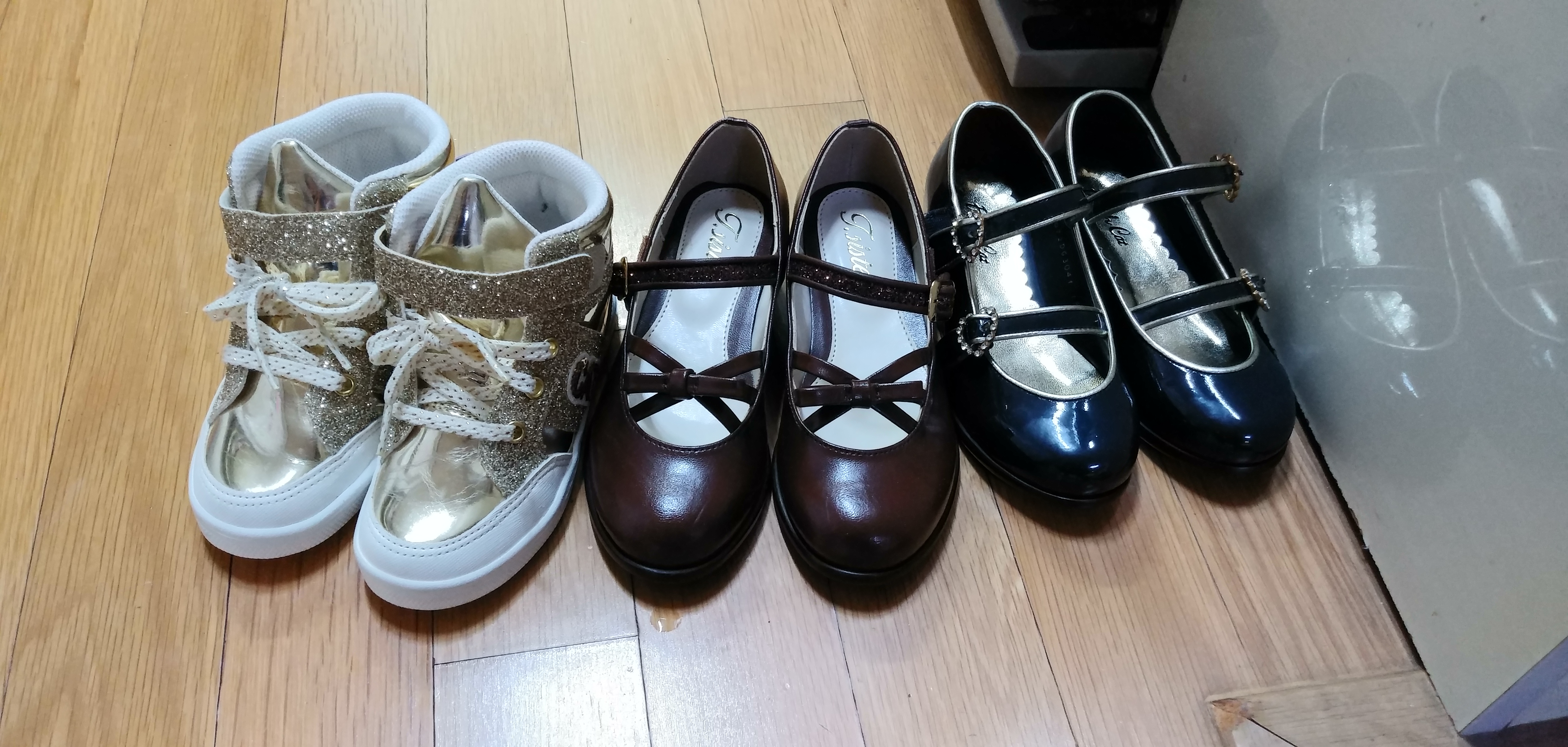 제가 골라온 구두입니다. 한켤레는 둘째가 맘에 든다고 계속 신고 있는 바람에 사진을 못찍었네요. 끝에 운동화가 12,000원이면 정말 저렴하지 않나요? 구두는 학교에 들어간 큰딸이 아주 잘 신고 다닌답니다. 구두 말고도 원피스 한벌과 타이즈 하나까지 총 6종을 구매했는데 97,000원이 나왔어요. 프랜치캣 가격을 알고계신 분들이라면 정말 놀랄만한 가격 아닌가요?